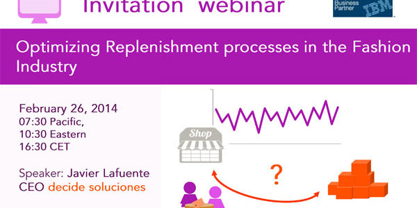 On February 26th, Javier Lafuente, CEO of decide soluciones, together with IBM presents the webinar “Optimizing replenishment processes in the Fashion Industry”.